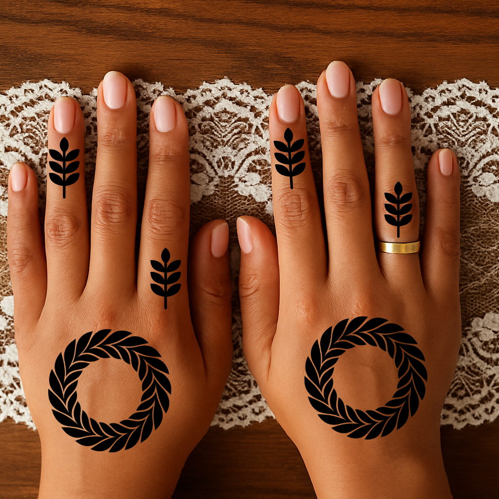 The Craftiqi Ring stencil set brings refined symmetry to your body art collection. Featuring two harmonious designs — a bold circular leaf sprig.