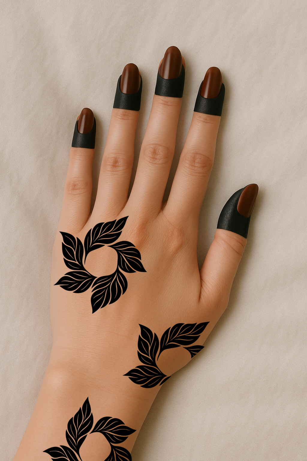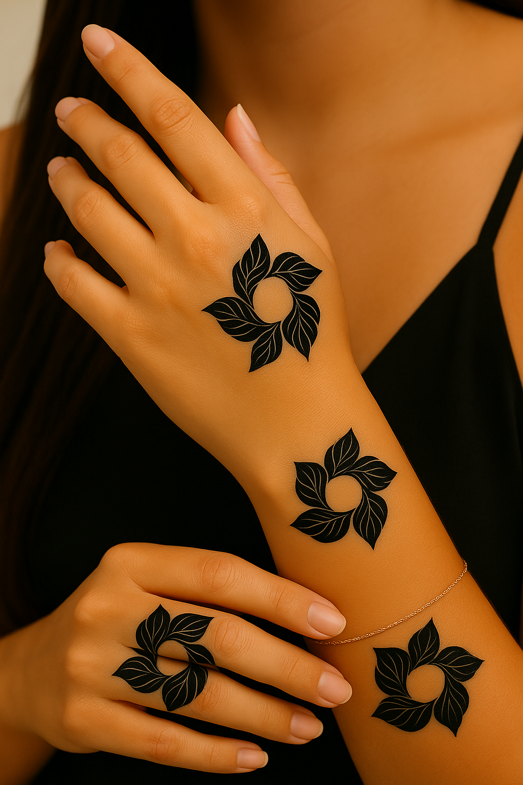 A clean, circular leaf design stencil perfect for fingers, hands, and wrists — elegant and nature-inspired.