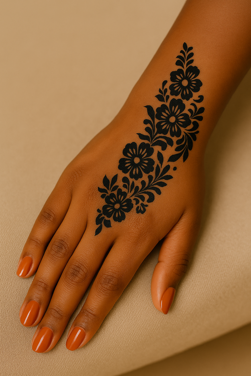 Step into the Midnight Garden, where florals bloom in inky elegance. This vertical stencil features cascading blossoms and leaf details designed to follow the natural contours of the hand.
