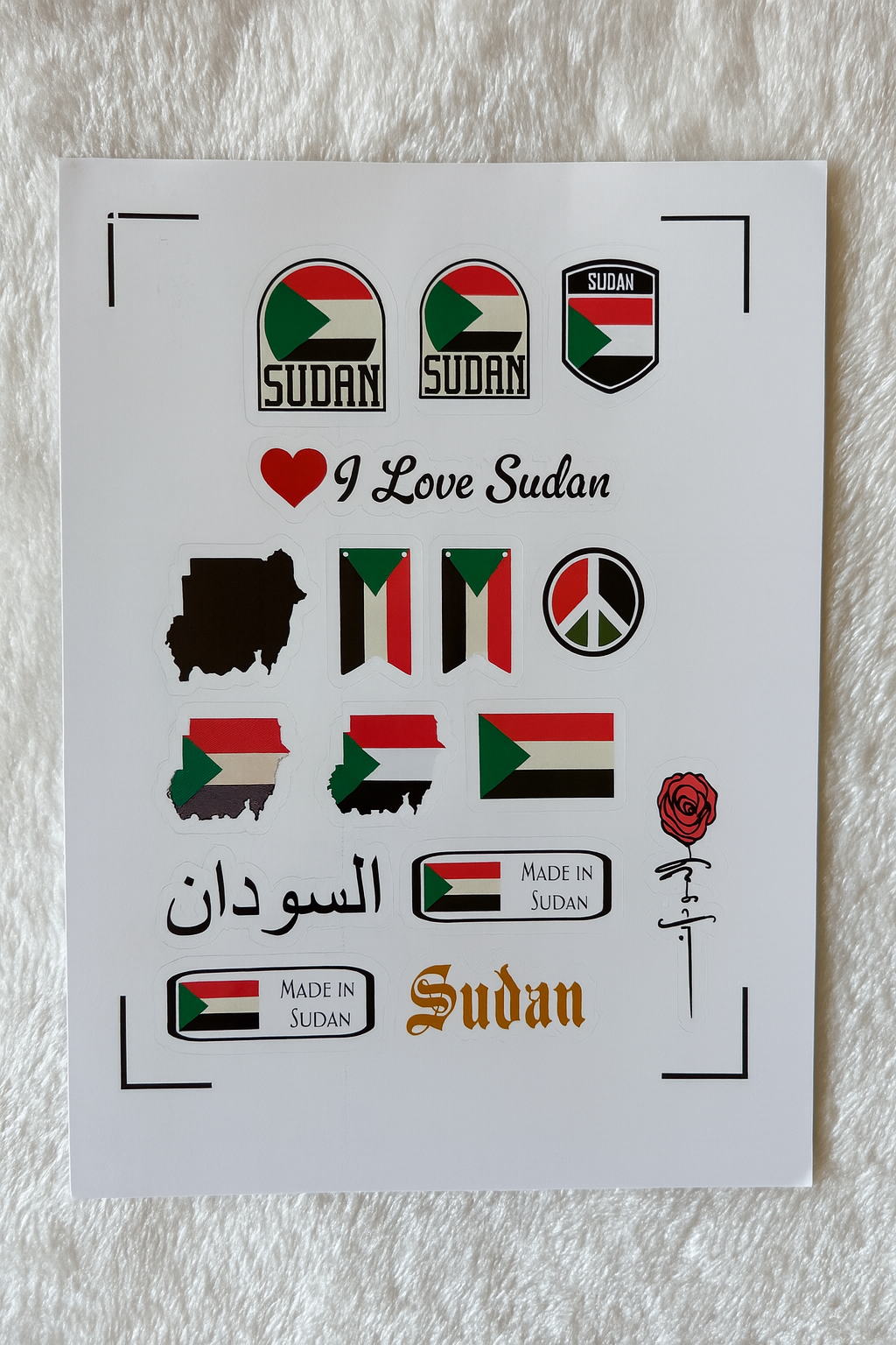 Celebrate Sudan with this beautifully curated Sudan Sticker Sheet! 🇸🇩✨Each sticker is printed on durable, high-quality vinyl with a soft satin finish — water-resistant and long-lasting.