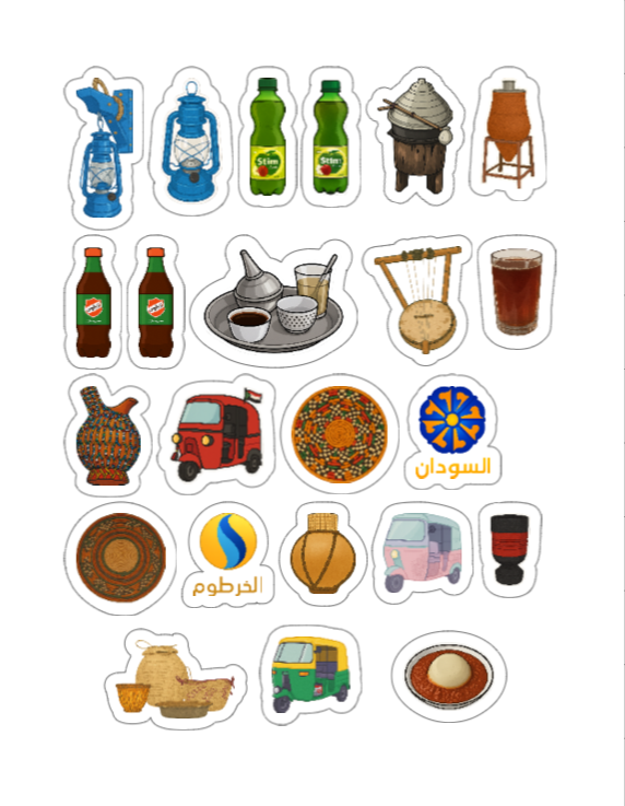 Relive cherished memories of Sudan with this curated sticker sheet capturing everyday icons, cultural artifacts, and flavors from the past.